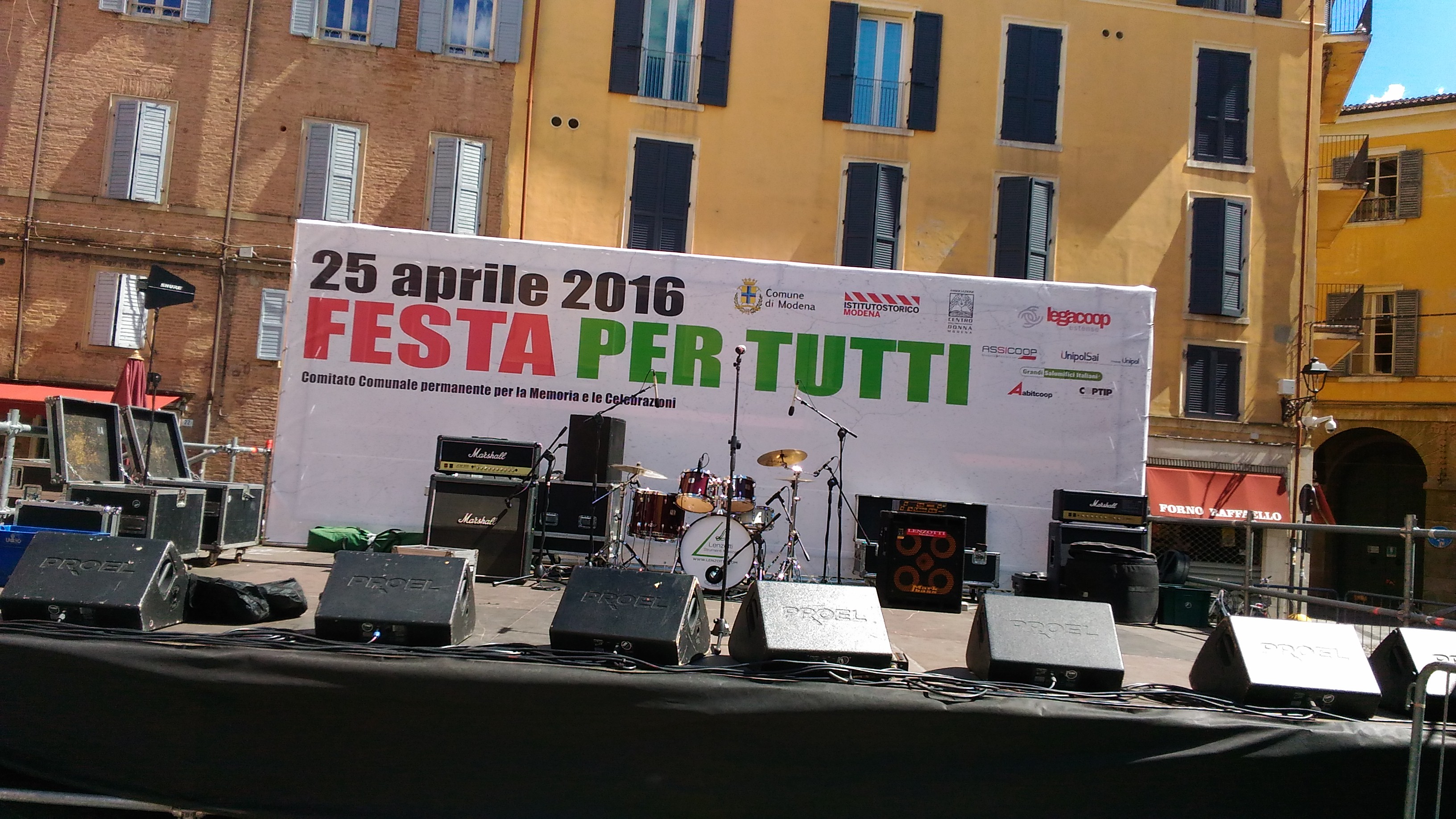 Nella cornice cittadina di Piazza XX Settembre il pomeriggio del 25 aprile 2016 nell’ambito della tradizionale Festa per tutti organizzata dal comune di Modena, Comitato comunale permanente per la memoria e le celebrazioni, si è tenuta la conferenza spettacolo “Le elezioni della libertà” con letture dell’attrice Pamela Villoresi, selezionate dagli archivi del Centro documentazione donna e dell’Istituto Storico.