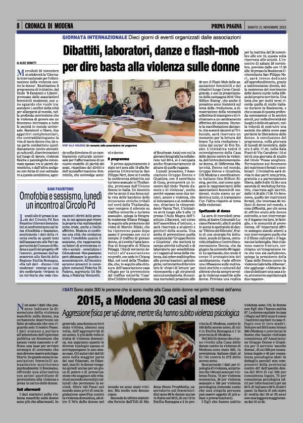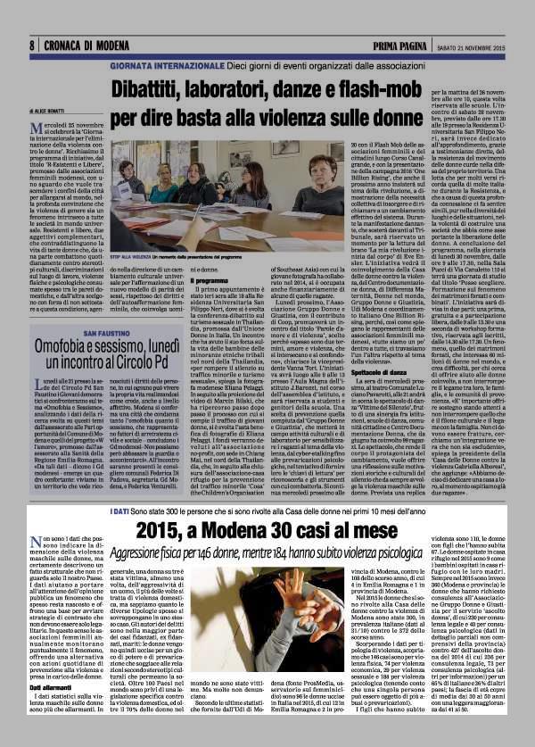 RASSEGNA STAMPA DELLE INIZIATIVE IN OCCASIONE DEL 25 NOVEMBRE 2015