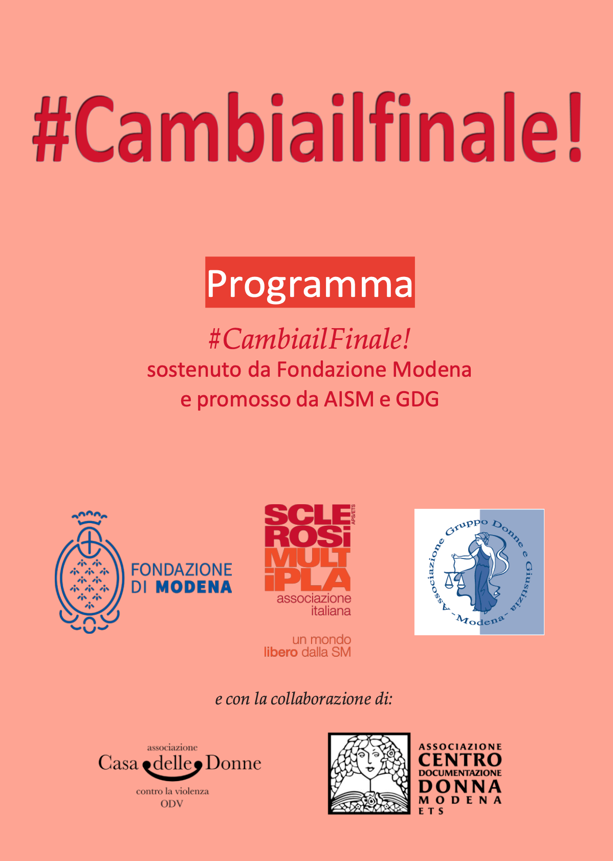 Sabato 2 dicembre settembre 2023 dalle 9.00 alle 16.00 presso la Sala Renata Bergonzoni – Casa delle Donne di Modena (str. Vaciglio nord, 6) si terrà l’incontro La rete contro la discriminazione e la violenza contro le donne nell’ambito del progetto #CambiailFinale! Una rete di prossimità per il supporto delle donne con disabilità che subiscono discriminazione multipla sul lavoro, in famiglia e che possono diventare esposte alla violenza , promosso da Aism Modena (Associazione Italiana Sclerosi Multipla) e Gruppo Donne e Giustizia con il sostegno della Fondazione di Modena.