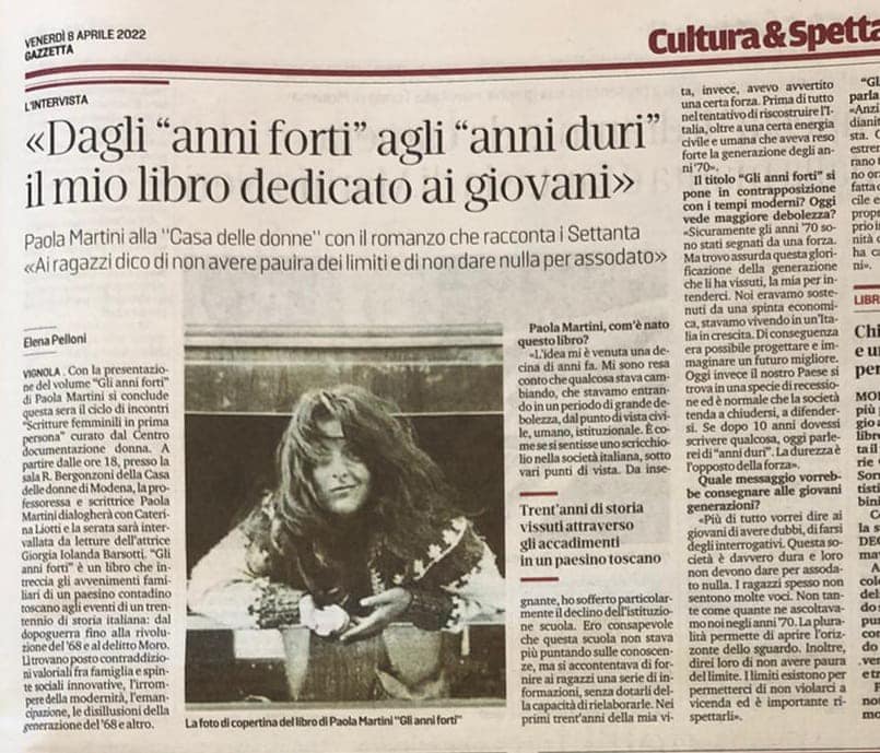 Nuovo ciclo con tre incontri di presentazioni di libri “Scritture femminili in prima persona” presso la Sala Renata Bergonzoni, Casa delle Donne di Modena (Str. Vaciglio nord, 6 – Modena) nell’ambito del progetto In Prima Persona Femminile del Centro documentazione donna, sostenuto dalla Fondazione di Modena e con il patrocinio nel Comune di Modena.