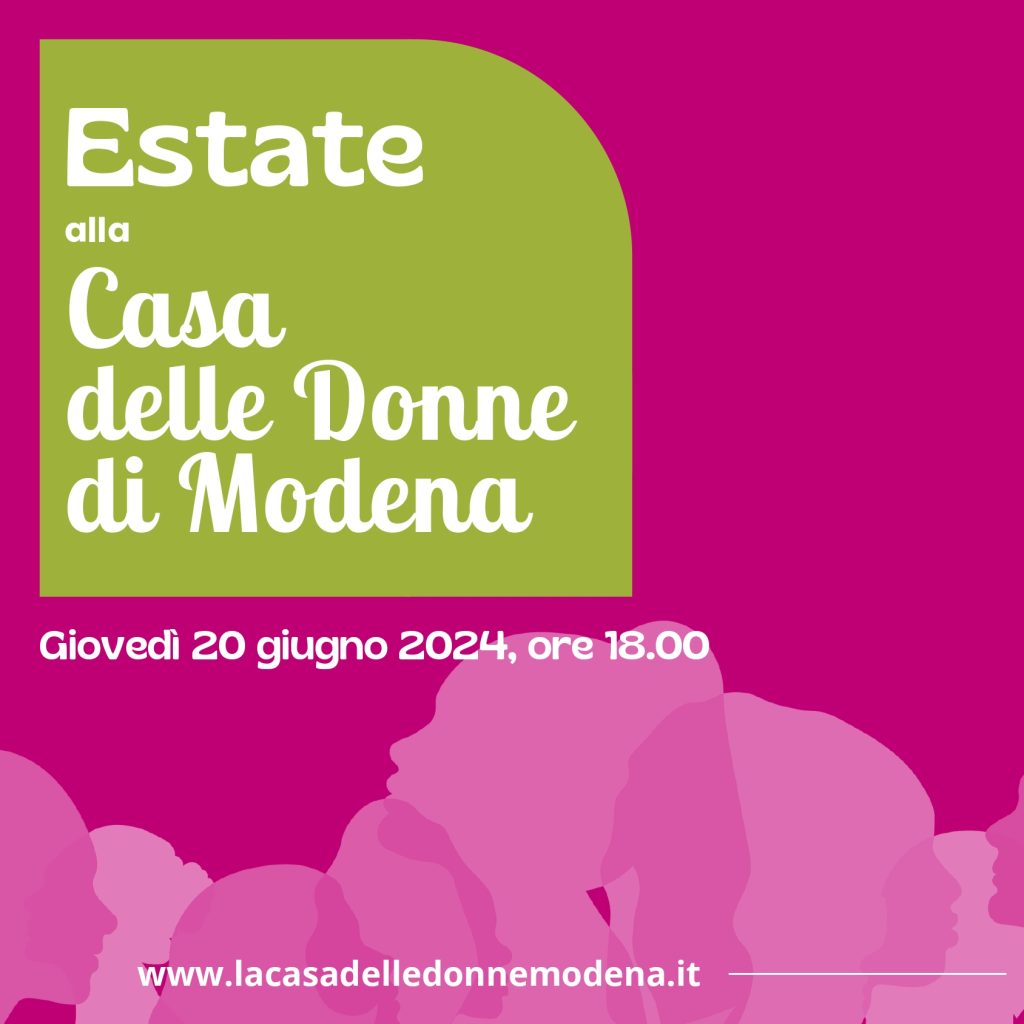 Dal 13 giugno al 4 luglio 2024 si terrà presso la Sala Renata Bergonzoni – Casa delle Donne (Str. Vaciglio nord 6, Modena) la rassegna Estate alla Casa delle Donne di Modena promossa dalla Casa delle Donne di Modena in collaborazione con Giunti al Punto – Librerie. 2° appuntamento – Giovedì 20 giugno 2024, ore 18.00 Vogliamo più […]