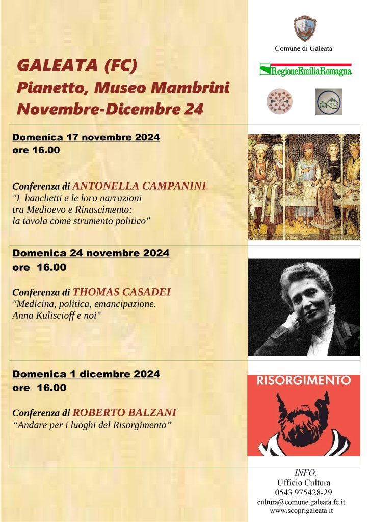 Domenica 24 novembre 2024 alle ore 16:00 presso il Pianetto, Museo Mambrini – Galeata (FC) si terrà la conferenza su Medicina, politica, emancipazione. Anna Kuliscioff e noi (con una graphic novel di Alice Milani) a cura di Vittorina Maestroni e Thomas Casadei (Mucchi, 2024). Interviene Thomas Casadei. Locandina