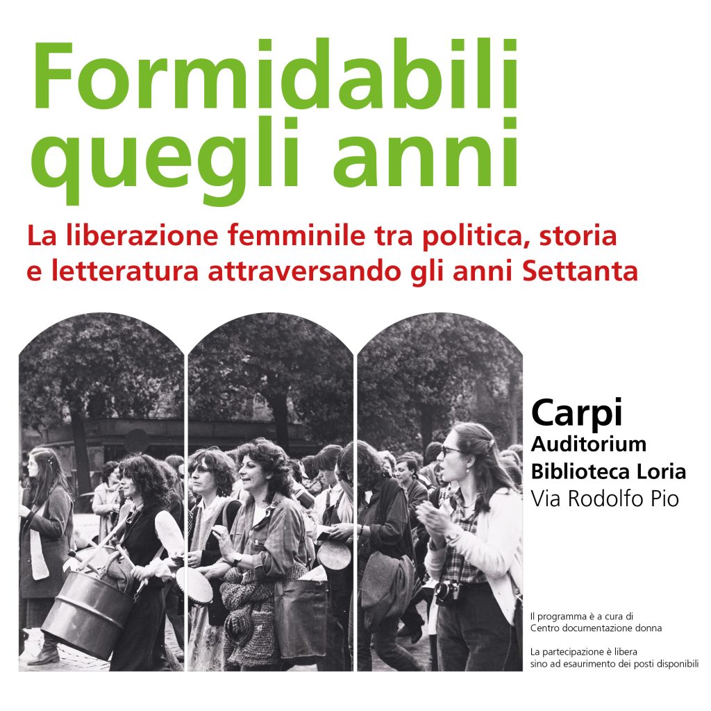 Primo appuntamento del ciclo di incontri “Formidabili quegli anni. La liberazione femminile tra politica, storia e letteratura attraversando gli anni Settanta” promossa da Università per libera età Natalia Ginzburg di Carpi, Centro documentazione donna e Istituto storico di Modena: sabato 8 febbraio 2025 ore 17.00 presso l’Auditorium Biblioteca A. Loria di Carpi Modificazione di sé […]