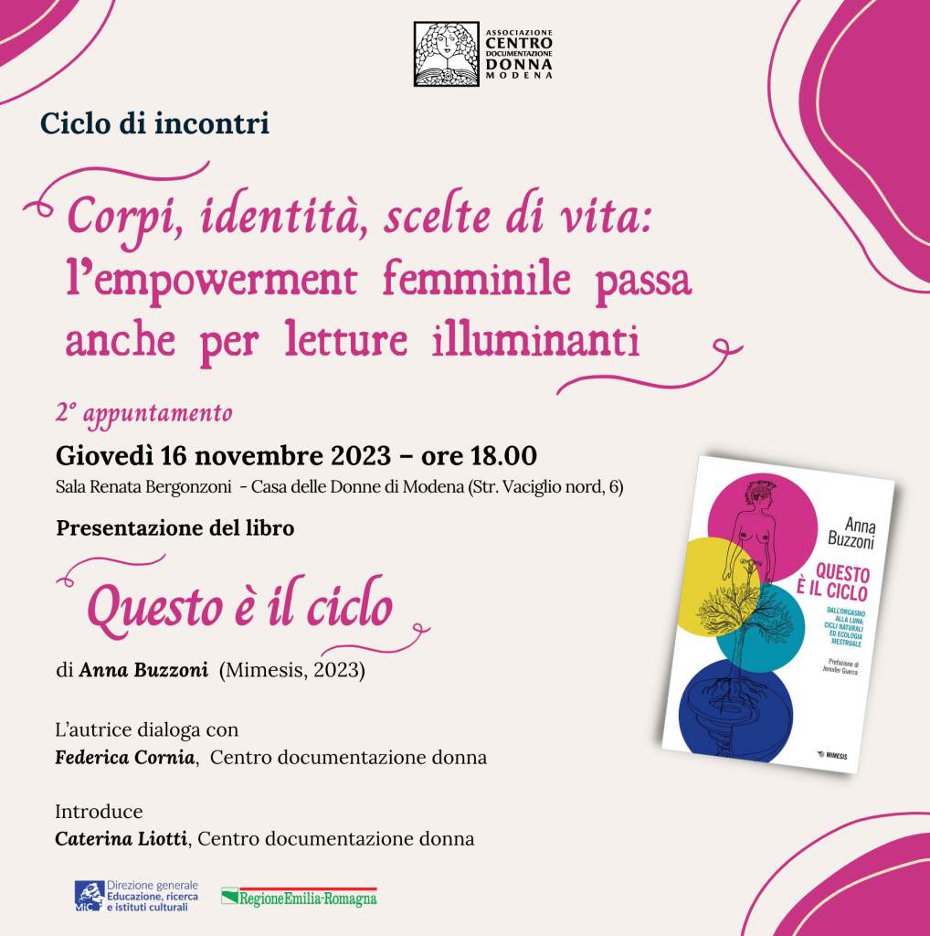 Corpi, identità, scelte di vita: l’empowerment femminile passa anche per letture illuminanti è il nuovo ciclo di presentazioni di libri promosso dal Centro documentazione donna che si terrà dal 19 ottobre al 16 dicembre 2023 presso la Sala Renata Bergonzoni, Casa delle Donne di Modena (str. Vaciglio nord, 6) 3° appuntamento – Giovedì 14 dicembre 2023 – […]