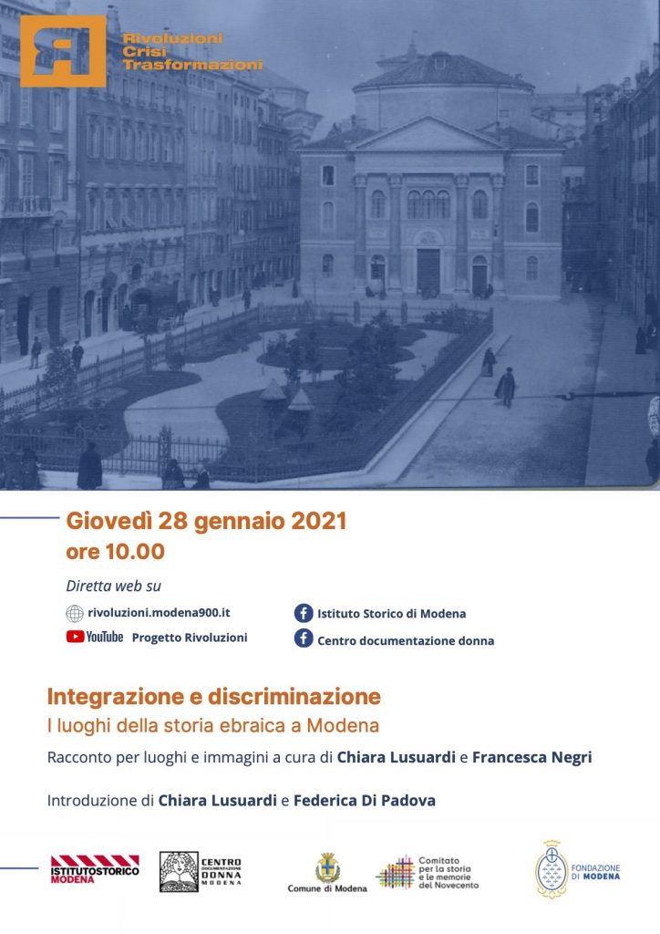In occasione della Giornata della Memoria, giovedì 28 gennaio 2021 alle ore 10.00 in diretta web sul sito e sul canale You Tube del progetto Rivoluzioni e sulle pagine Facebook dell’Istituto Storico di Modena e del Centro documentazione donna si terrà l’incontro Integrazione e discriminazione. I luoghi della storia ebraica a Modena, un racconto per luoghi e immagini a cura di Chiara Lusuardi […]