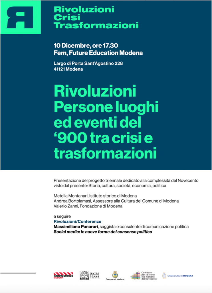 Si terrà martedì 10 dicembre 2019 alle ore 17.30 presso FEM-Future Education Modena, l’iniziativa di avvio e presentazione del progetto triennale RIVOLUZIONI. Persone, luoghi ed eventi del ‘900 tra crisi e trasformazioni dedicato alla complessità del Novecento visto dal presente che intende realizzare nei prossimi anni attività didattiche, di ricerca e iniziative culturali nelle occasioni celebrative degli anniversari del calendario […]