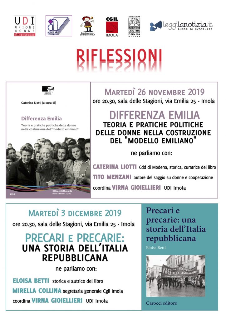Martedì 26 novembre 2019 alle ore 20.30 a Imola, presso la Sala delle Stagioni (via Emilia 25) presentazione del libro DIFFERENZA EMILIA. Teoria e pratiche politiche delle donne nella costruzione del “modello emiliano” a cura di Caterina Liotti (Bradypus 2019). Saranno presenti l’autrice, Caterina Liotti, e l’autore del saggio su donne e cooperazione, Tito Menzani. […]