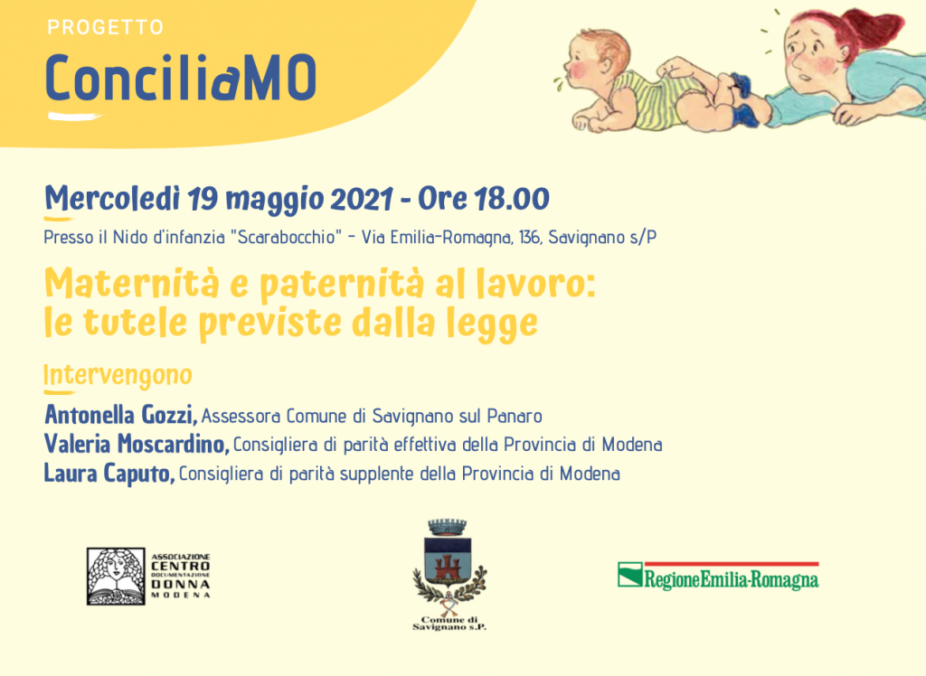 A partire dalle ore 10.00 di lunedì 8 marzo 2021 sarà visibile sul canale YouTube del Comune di Savignano sul Panaro l’iniziativa OGGI TOCCA A ME! Identità da conciliare: madri e padri nella cura dei figli. I risultati del progetto regionale ConciliaMo. Ne parlano insieme: Antonella Gozzi, Assessora all’Inclusione del Comune di Savignano s/P. Natascia Corsini, Centro documentazione donna di Modena Nel corso […]