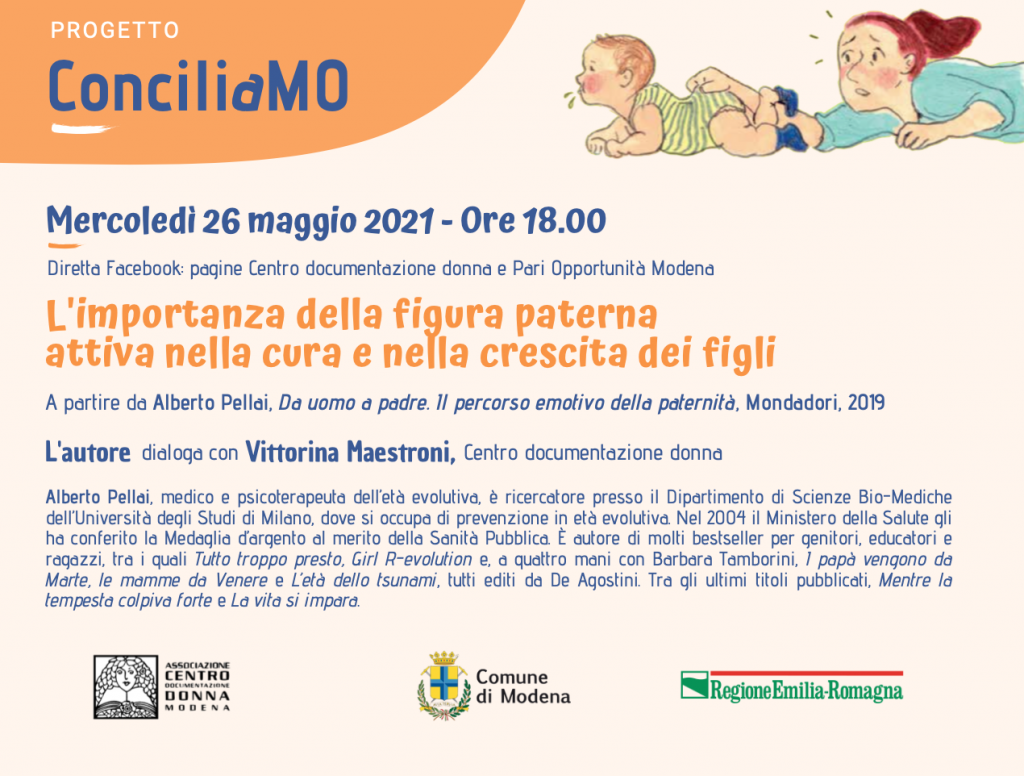 Primo appuntamento del ciclo di incontri online realizzati in collaborazione con il Comune di Modena, Assessorato Istruzione e Pari opportunità e visibili sulla pagina Facebook Centro documentazione donna e sul canale YouTube Centro documentazione donna. 1° incontro – Mercoledì 26 maggio 2021, ore 18.00 L’importanza della figura paterna attiva nella cura e nella crescita dei figli A partire da Alberto Pellai, Da uomo […]