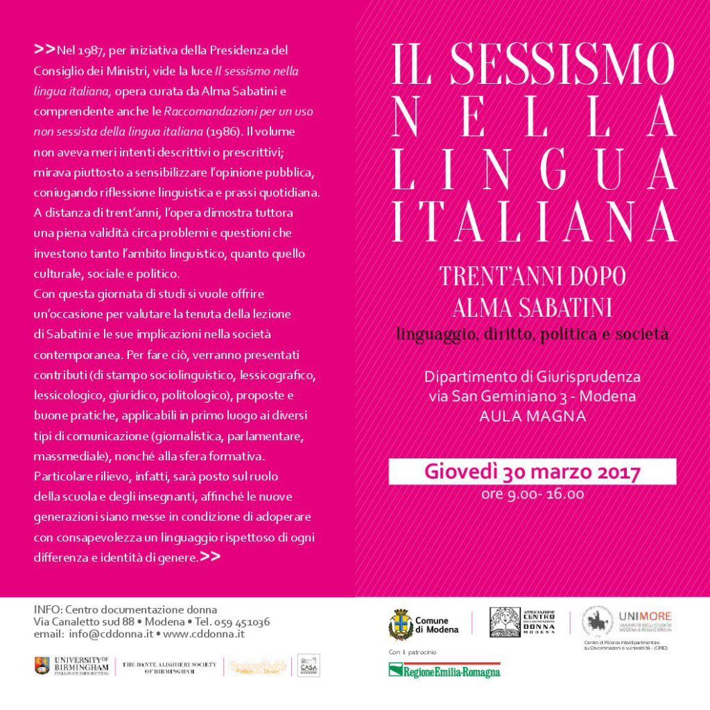 Giornata di studi “Il sessismo nella lingua italiana”