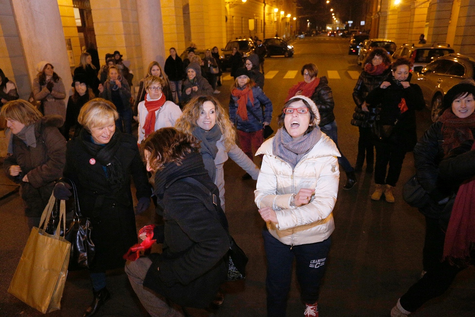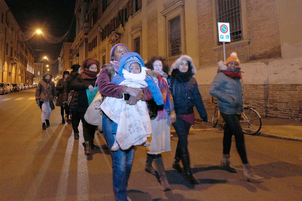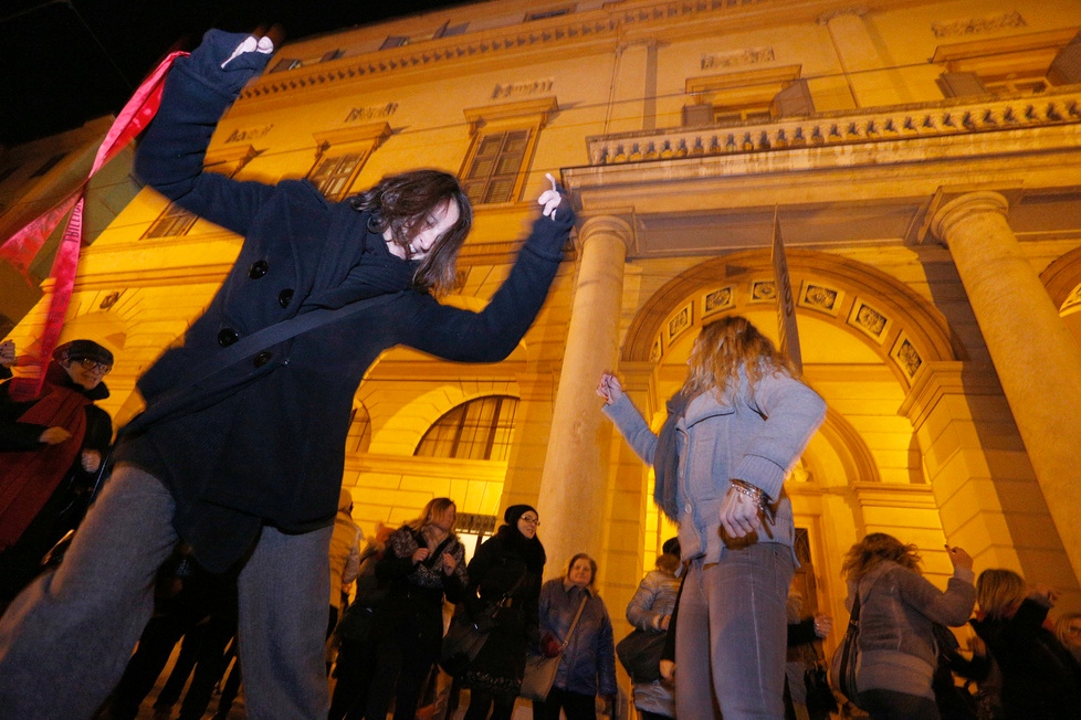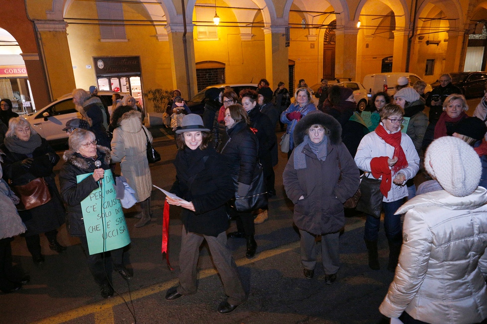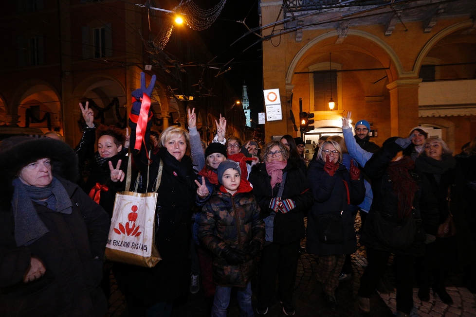 Per dire “Basta alla violenza sulle donne” ieri sera il corteo organizzato dalle associazioni femminili (Casa delle donne contro la violenza, Centro documentazione donna, Differenza Maternità, Donne nel mondo, Gruppo Donne e Giustizia, Udi di Modena e Coordinamento Italiano One Billion Rising), partito nel cuore della città tra via Emilia e Corso Canalgrande, si è fermato davanti al Teatro Comunale Pavarotti dove hanno parlato le donne delle Associazioni e dove si è svolto il Flash Mob che ha lanciato e presentato la Campagna 2016 “One Billion Rising Revolution”. A seguire lo spettacolo di danza “Vittime del Silenzio”, promosso da Comune di Modena, Centro documentazione donna, Federazione Nazionale Associazioni Scuole di Danza, ATER, Fondazione Teatro Comunale Modena, con il patrocinio della Regione Emilia Romagna, in un Teatro Comunale gremito di un pubblico molto giovane in una gioiosa partecipazione.