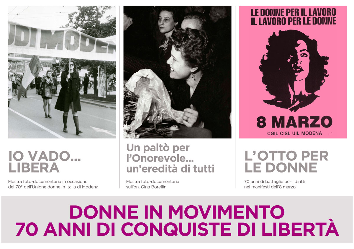 IO VADO… LIBERA. Mostra foto-documentaria in occasione del 70° dell’Unione donne in Italia di Modena, a cura di Udi e Centro documentazione donna di Modena.