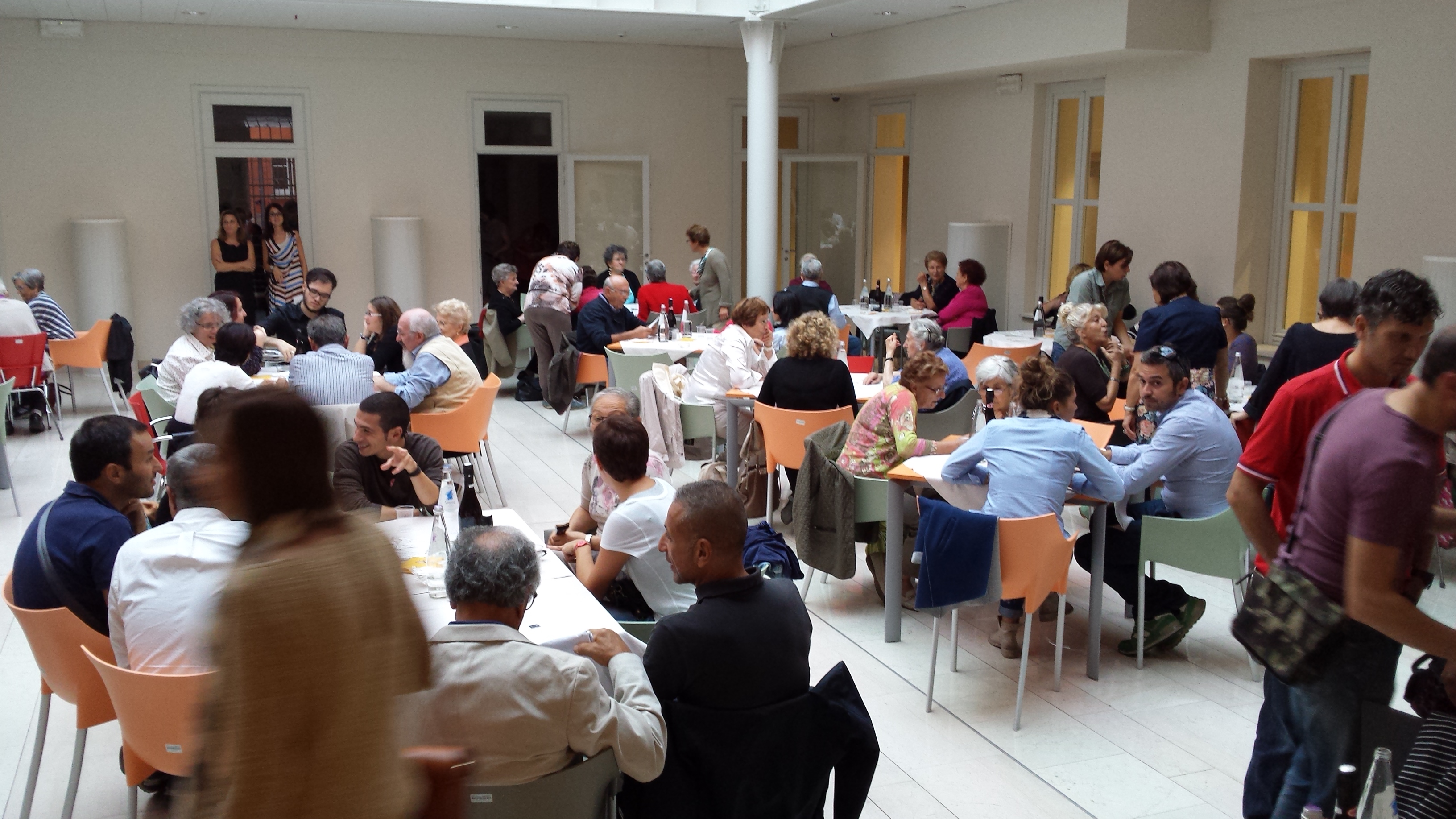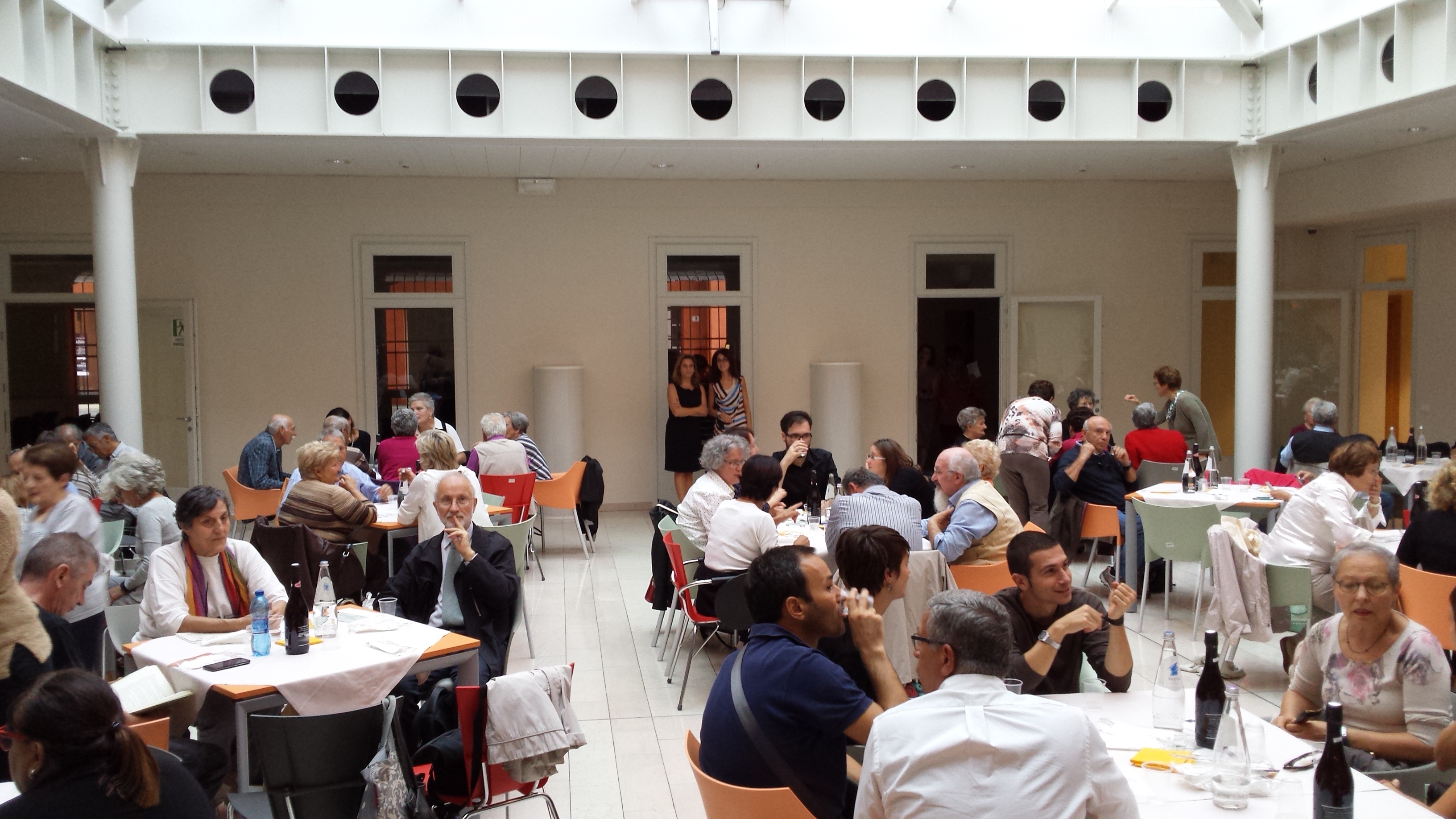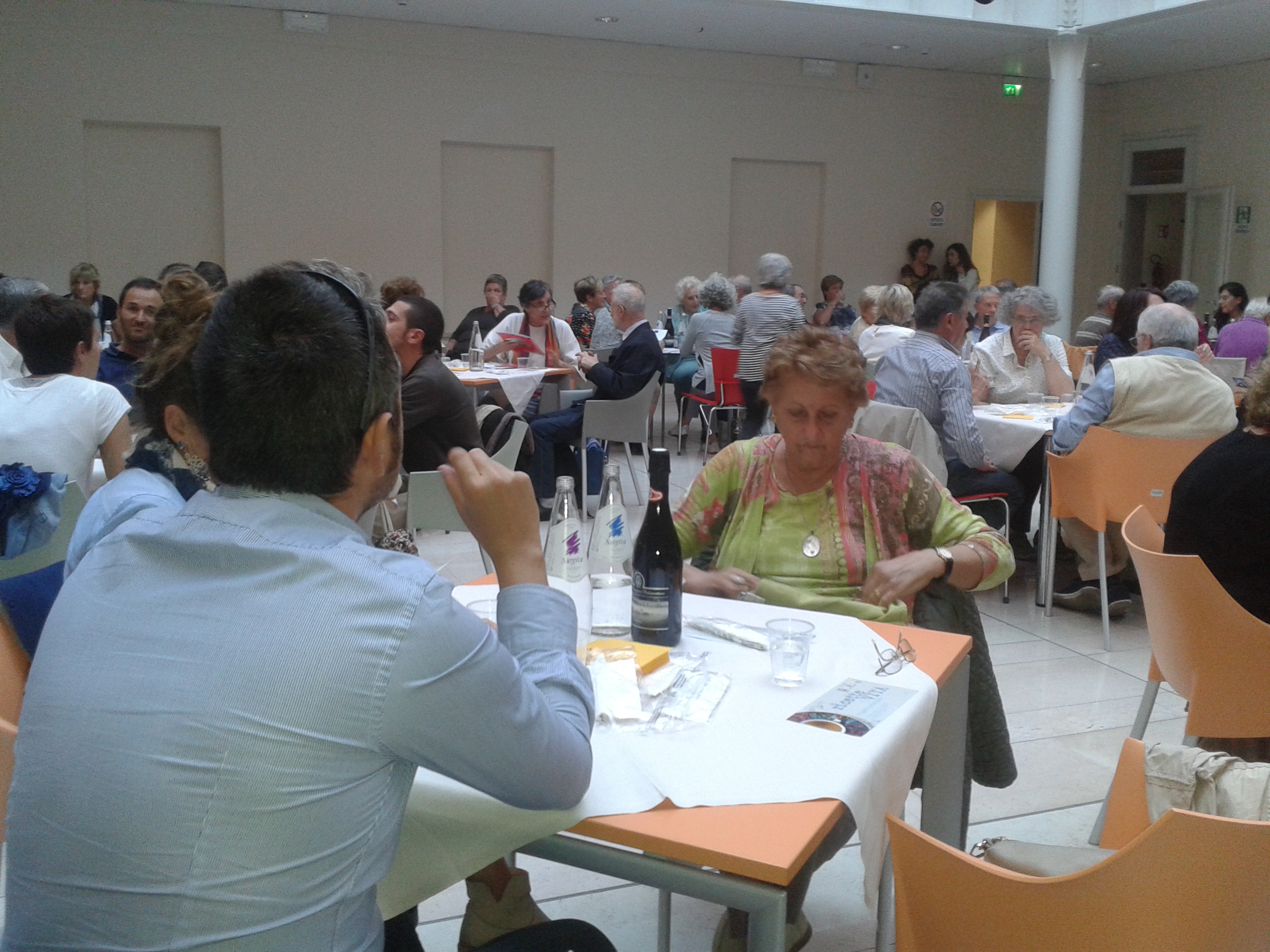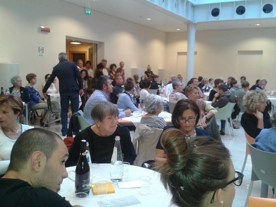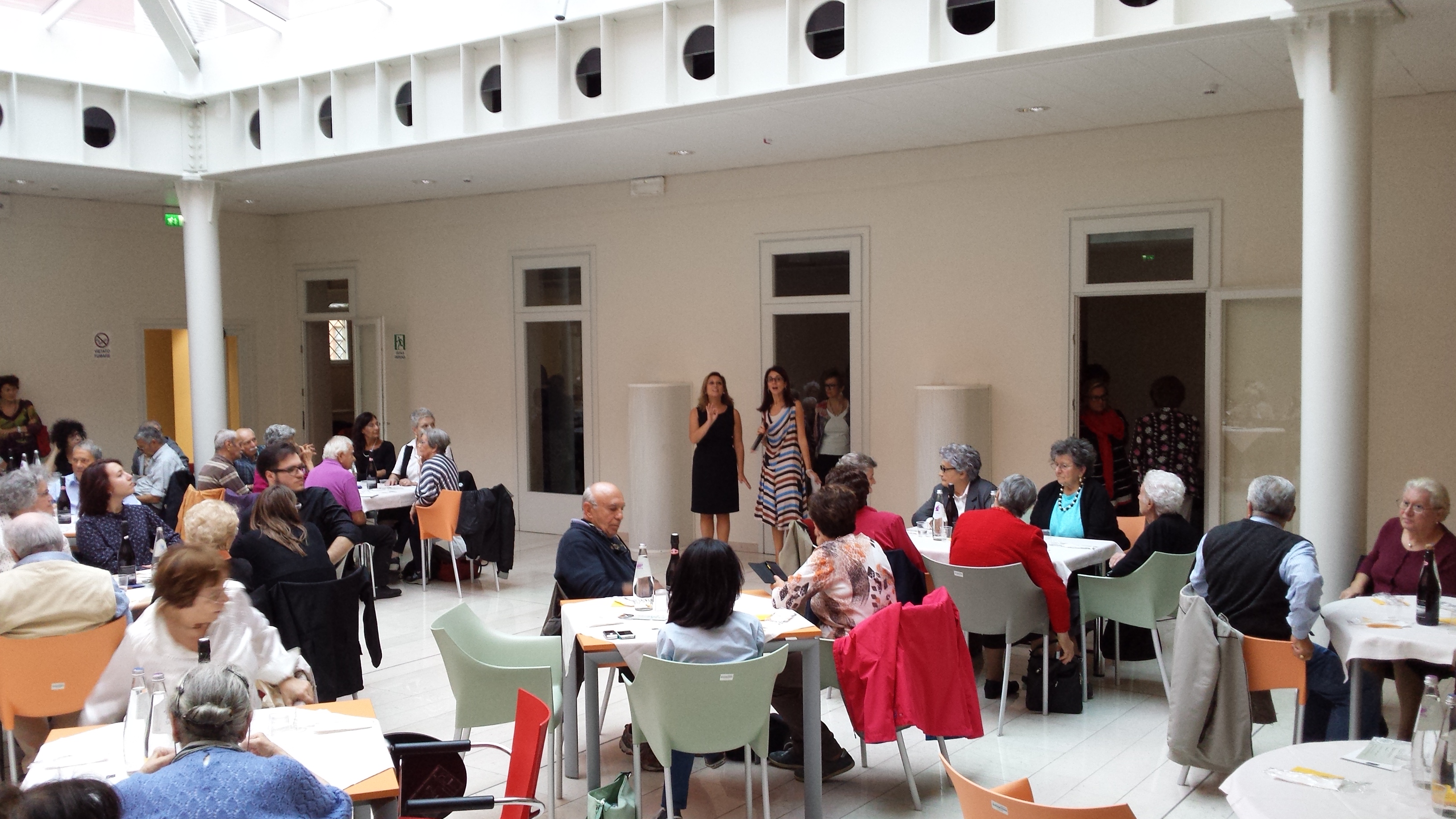 Sabato 26 settembre a partire dalle 18.00, nella bella cornice della Sala Piazzetta coperta della Residenza Universitaria San Filippo Neri, si è svolta l’iniziativa pubblica che ha concluso il percorso partecipato “Ricette di Vita, promosso dal Centro documentazione donna, con il patrocinio del Comune di Modena, in occasione di Expo 2015. Un’iniziativa riuscita che ha avuto una presenza di pubblico davvero inaspettata – eravamo più di un centinaio – e un riscontro altrettanto positivo. In tanti e tante ci hanno fatto pervenire i loro ringraziamenti nei giorni successivi e con queste parole uno dei presenti ha commentato la serata: “La proposizione di raccontare uno spaccato della propria vita, della propria storia, della propria terra, attraverso la tavola, è qualcosa che ognuno di noi (anche i più giovani) ha dentro, ma che difficilmente viene esplorata in forma letteraria o teatrale: troppo banale, la cucina, poco poetica, erroneamente ritenuta meno evocativa ed emozionale di eventi, storie intime, dolori o gioie personali. Ma le famiglie, le società, gli affari, da sempre si fanno, si costruiscono attorno a una tavola. Ecco che il racconto fluido delle esperienze singole, con la bella idea della rappresentazione reale di una tavola imbandita, alla quale arrivavano via via le portate, è un’idea che io svilupperei e riproporrei anche in futuro. Perchè è un’idea non solo “di vita”, ma “vitale”, gioiosa e che crea il piacere della condivisione: proprio come una bella tavola apparecchiata dai buoni piatti della nostra tradizione o delle tradizioni altrui”.