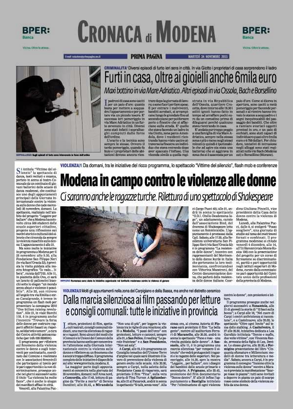 RASSEGNA STAMPA DELLE INIZIATIVE IN OCCASIONE DEL 25 NOVEMBRE 2015