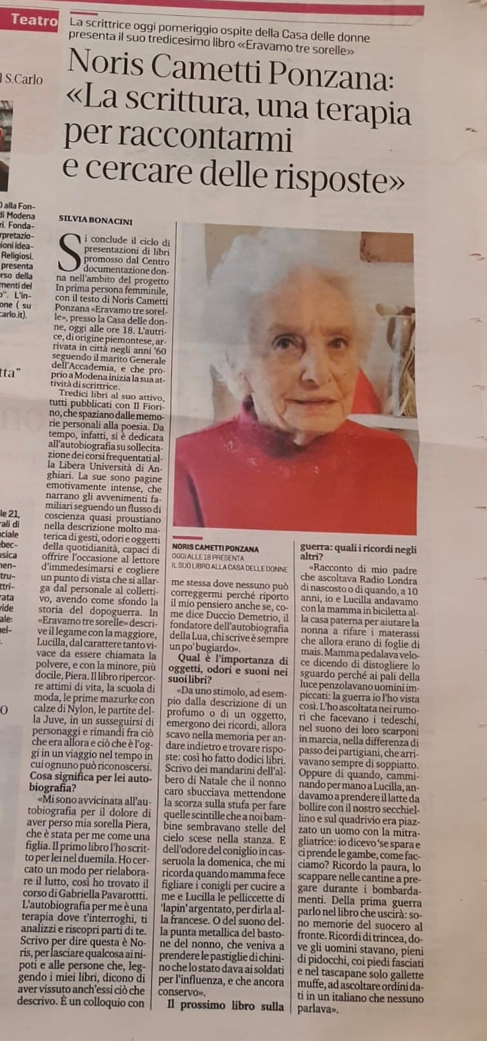 Nuovo ciclo con tre incontri di presentazioni di libri presso la Sala Renata Bergonzoni, Casa delle Donne di Modena (Str. Vaciglio nord, 6 – Modena) nell’ambito del progetto In Prima Persona Femminile del Centro documentazione donna, sostenuto dalla Fondazione di Modena e con il patrocinio nel Comune di Modena.