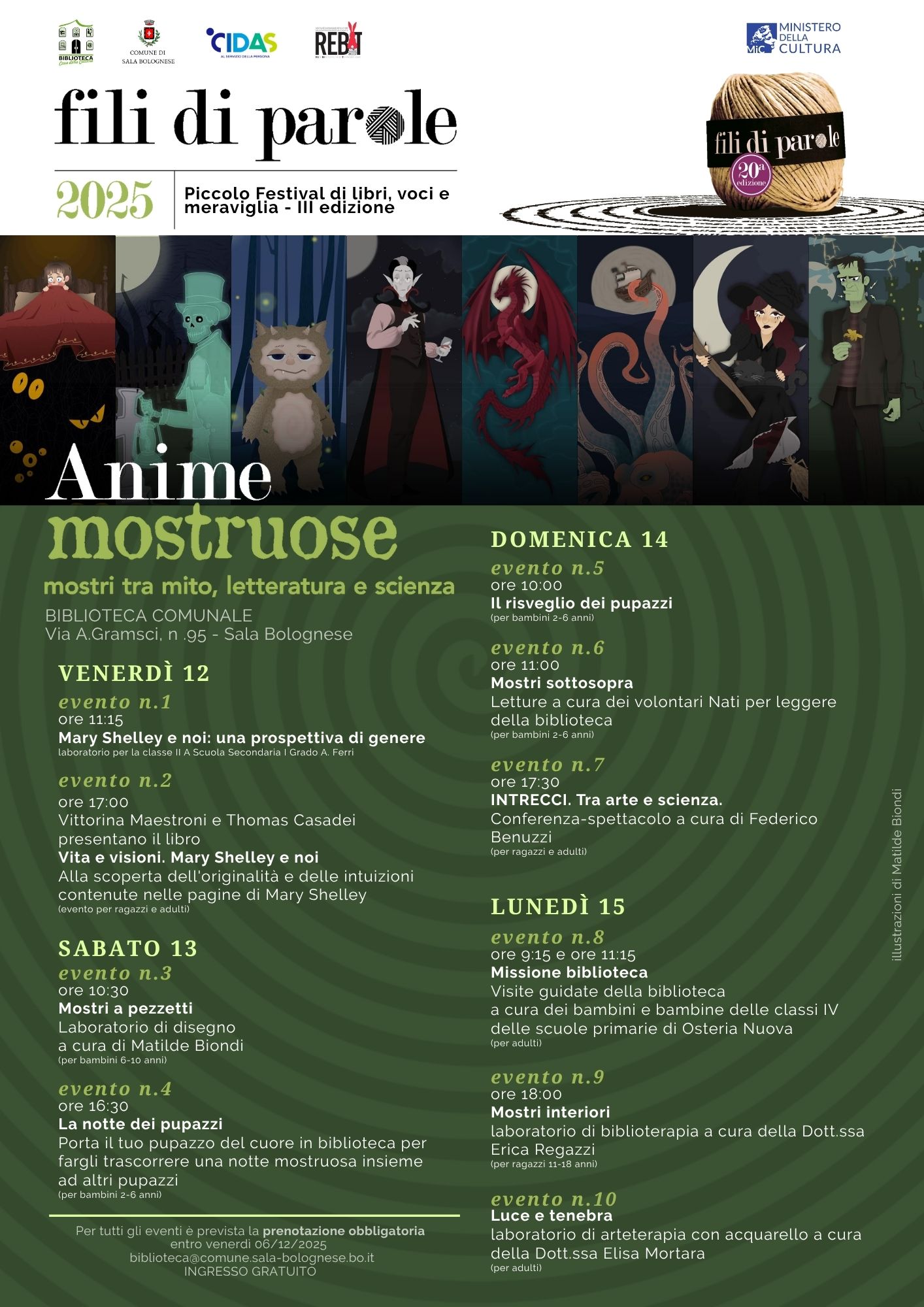 Ingresso gratuito con prenotazione obbligatoria a biblioteca@comune.sala-bolognese.bo.it