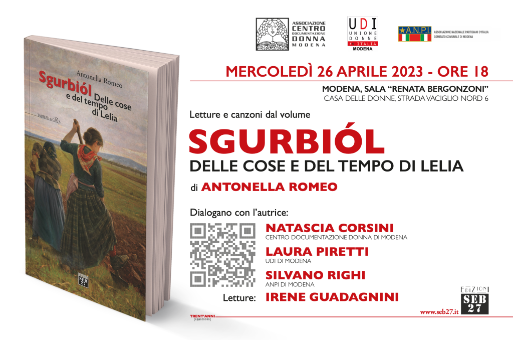 Mercoledì 26 aprile 2023 alle ore 18.00 presso Sala R. Bergonzoni, Casa delle donne di Modena (Strada Vaciglio nord 6) si terrà l’incontro Lelia, una donna nel Novecento, canzoni e letture a partire da Sgurbiól. Delle cose e del tempo di Lelia di Antonella Romeo (Edizioni Seb27, 2021). Lelia era uno Sgurbiol, non più una bambina non ancora […]
