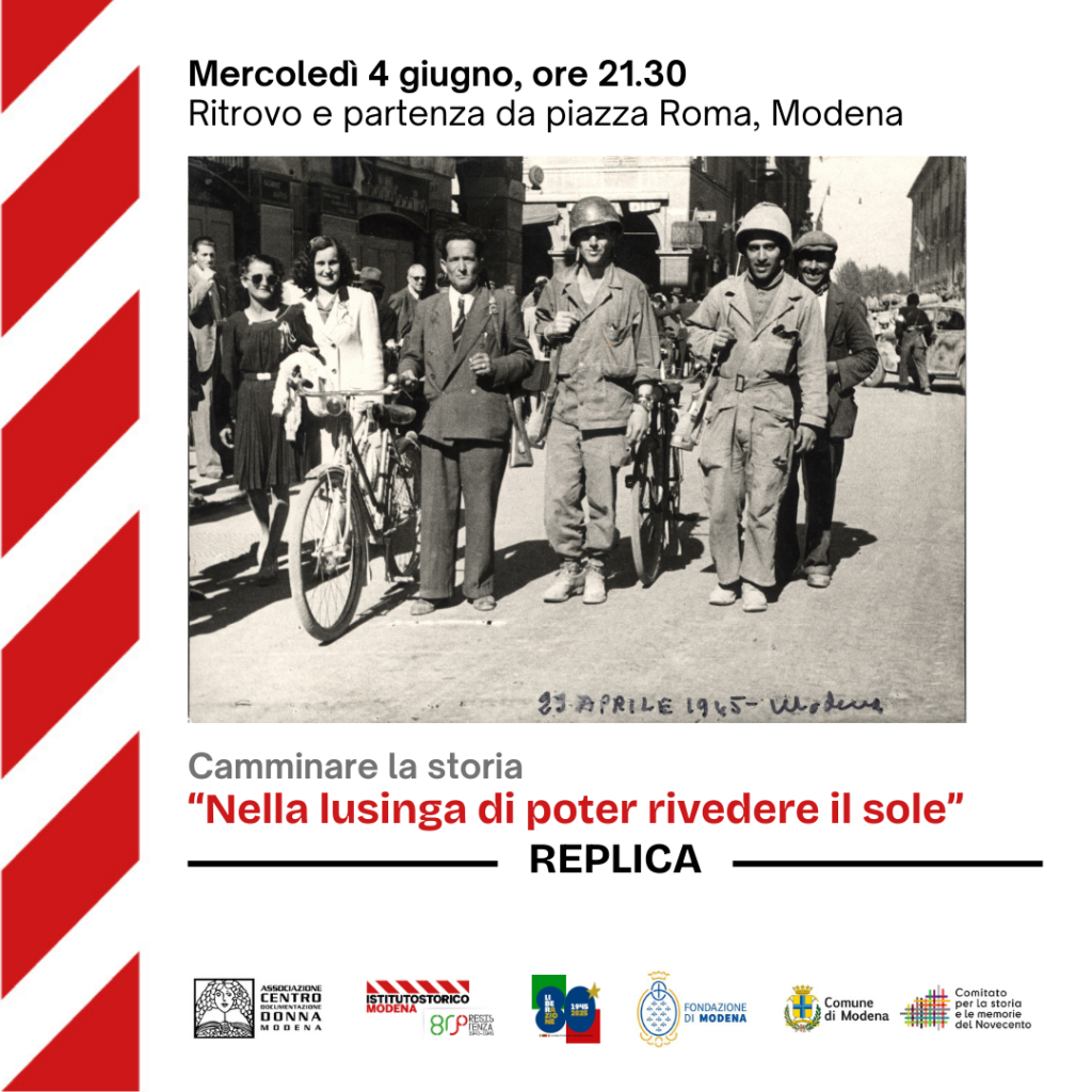 Mercoledì 4 giugno 2025 alle ore 21.30 nel centro storico di Modena si terrà la seconda edizione del trekking urbano Camminare la storia “Nella lusinga di poter rivedere il sole con proiezione di documenti e testimonianze sui temi del fascismo, della violenza, della Resistenza e della Liberazione a Modena. Esploreremo i luoghi di storia e di memoria […]