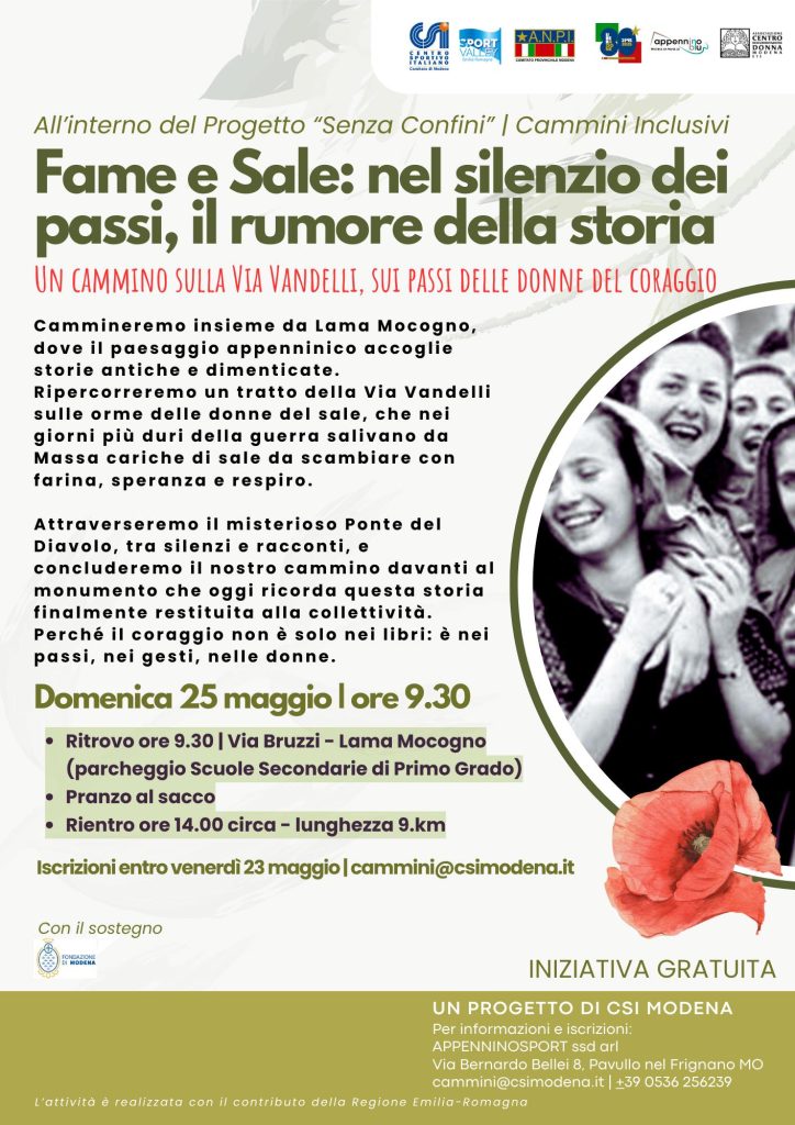 Domenica 25 maggio 2025 dalle ore 9.30 si terrà il trekking Fame e Sale: nel silenzio dei passi, il rumore della storia. Un cammino sulla via Vandelli, sui passi delle donne del coraggio promosso da CSI Modena, all’interno del Progetto “Senza Confini” | Cammini Inclusivi, con il sostegno di Fondazione di Modena e della Regione […]