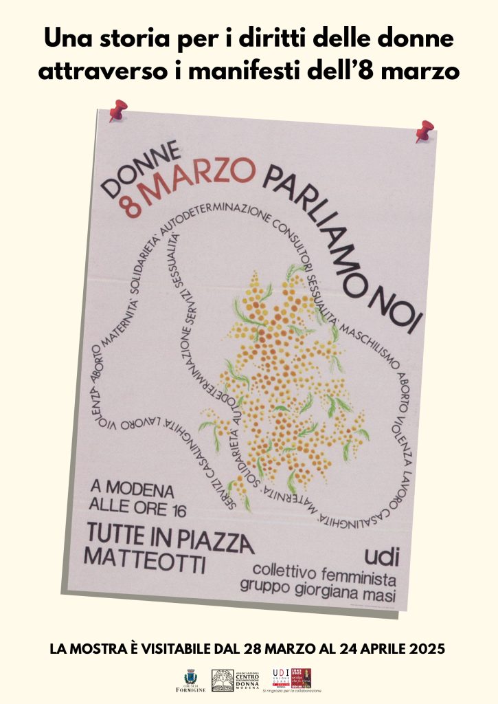 Dal 28 marzo al 24 aprile 2025 presso la Biblioteca Daria Bertolani Marchetti di Formigine (Via Sant’Antonio 4) sarà allestita la mostra Una storia per i diritti delle donne attraverso i manifesti dell’8 marzo a cura del Centro documentazione donna, un percorso espositivo attraverso i simboli della lotta per la parità di genere a cura del Centro documentazione donna con materiali […]